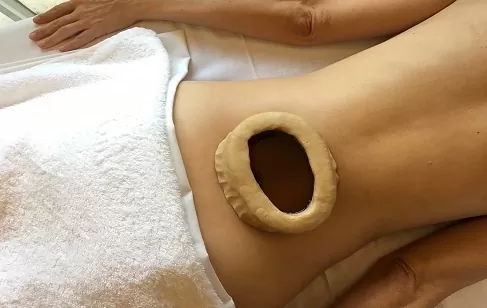 Dough of flour prepared in circular manner is placed on lower back which holds medicated oil for specific period relieving lumbar pains, nourishing muscles, and tissues of that area, increasing blood circulation. It is also beneficial in Lumbar degenerative disorders and sciatica.