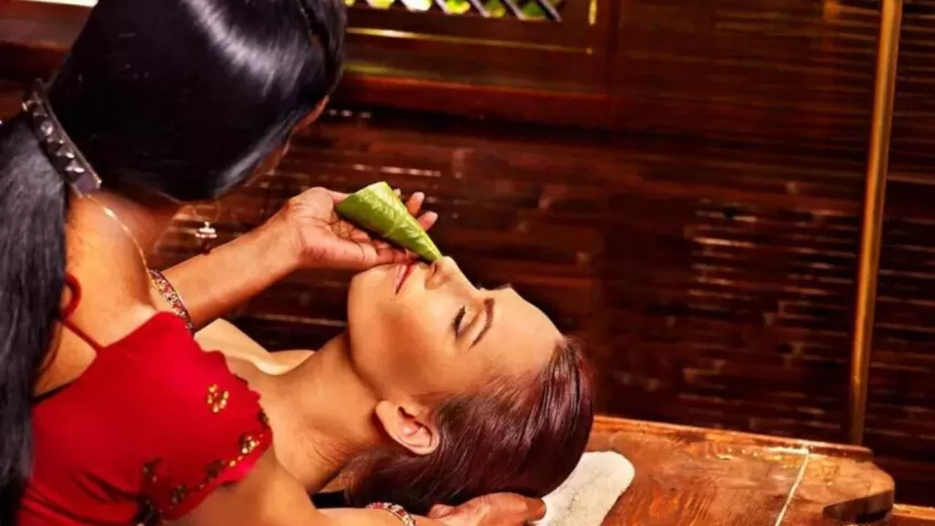 One among the Panchakarma cleansing process of Ayurveda to release the imbalances and toxins in the head and neck region, this therapy of infusing herbal medicines through the nostrils helps to clear blocked sinuses and head channels, stimulating the brain cells and central nervous system. Continued with an inhalation of herbal smoke with turmeric and pepper helps in clearing of the nasal canal and increase immunity.
