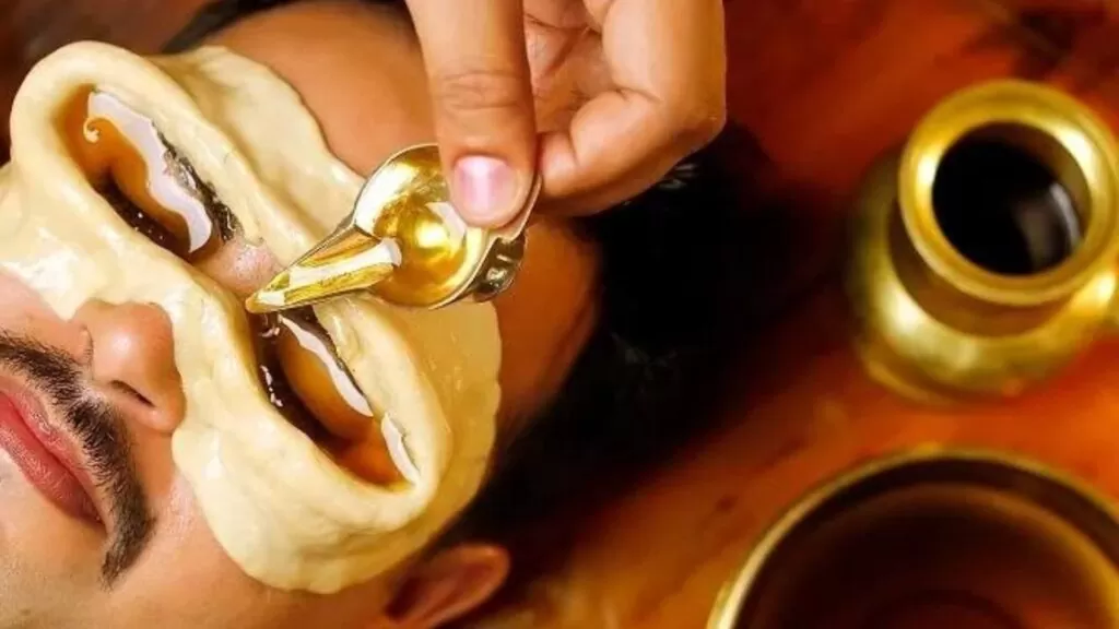 Akshi Dhara or Netra Dhara is a renowned practice where medicaments are gradually infused into the eye. Elaneer Kuzhambu- the elixir for the eye, is dropped in the eye for healing, trailed by the coconut water wash for that ultimate cleanse leaving you back with the feel of freshness and clarity of the vision and the sclera of the eye.