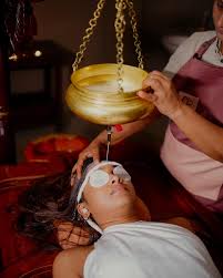 Herbal milk is gently poured over the forehead to pacify aggravated doshas, nourish tissues, and enhance memory and concentration.